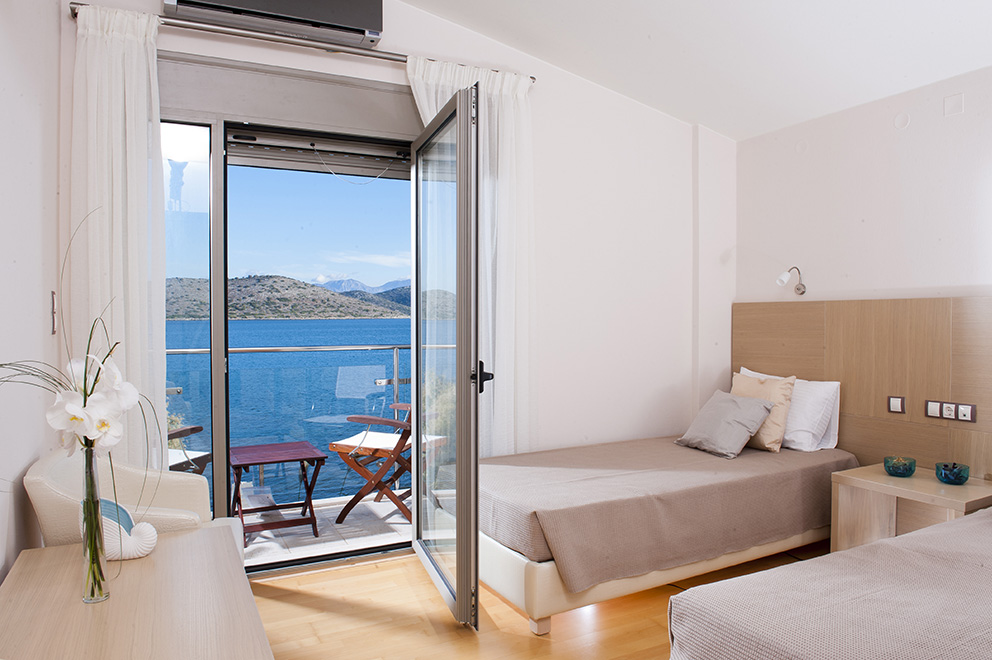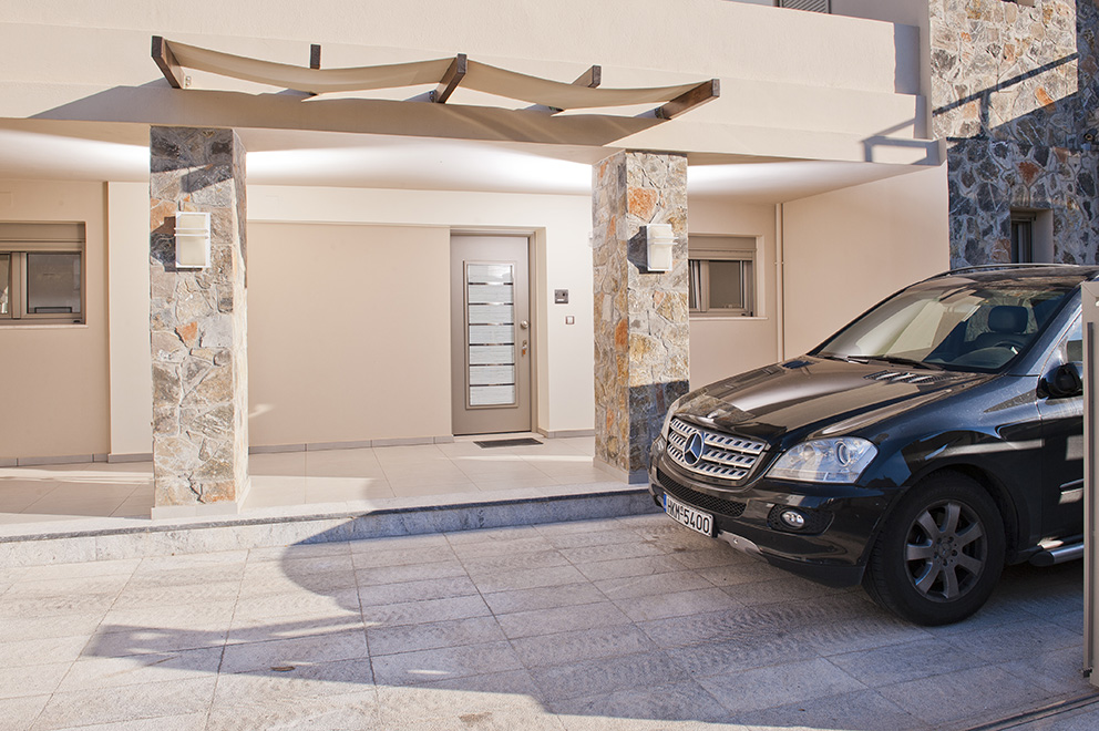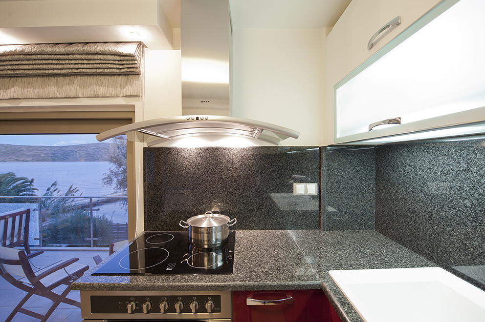 In a floor of 117.57 m² you can find all the facilites you need to make your stay here pleasant and trouble free. The wooden and marble floor, along with the modern furniture will give you a luxurious yet cosy feeling. Relax in your living room, while enjoying the beautiful view of the sea and the nearby islands. The dining room can sit up to 8 people, or in case you prefer to have dinner outside, the big veranda with the breathtaking view will make all your meals a great experience. The kitchen is very practical and fully equipped with all the electrical appliances. Finally, a small WC is there for your convenience.