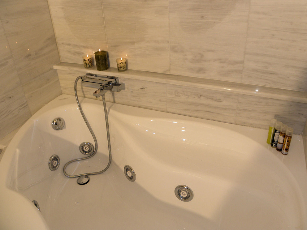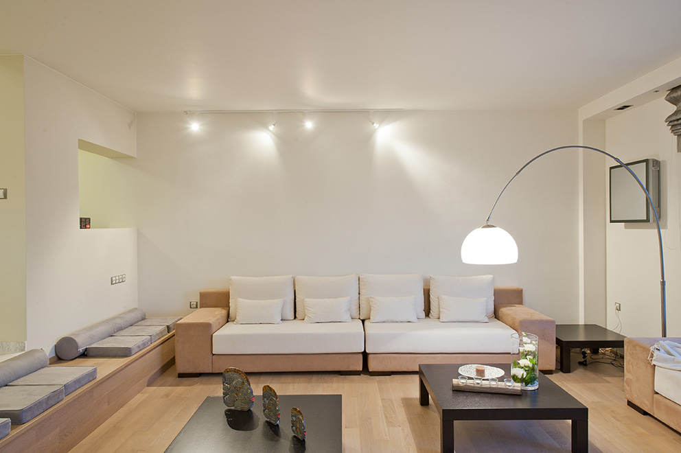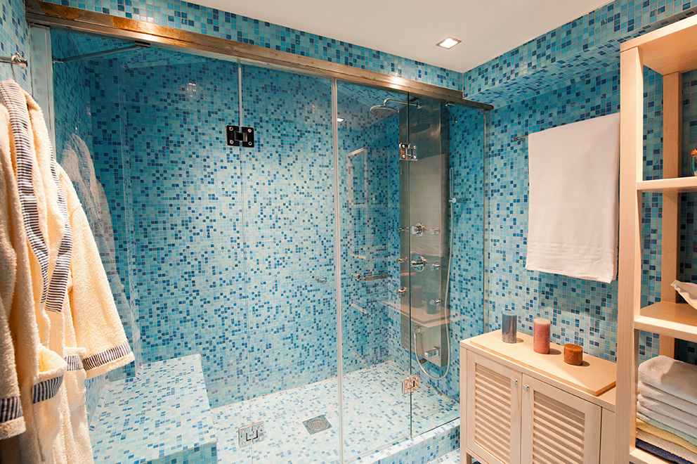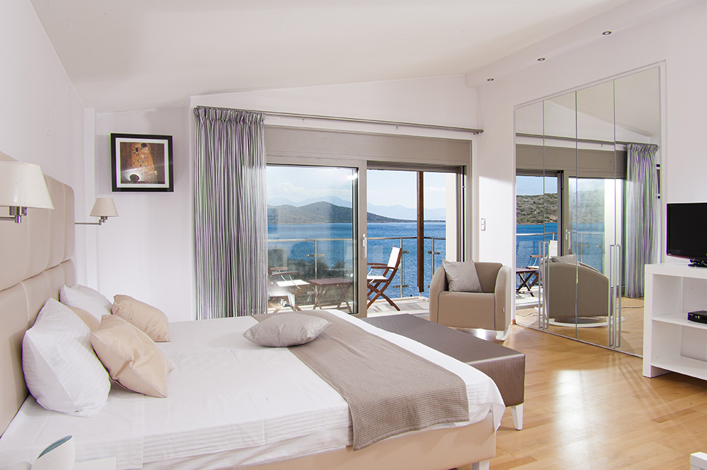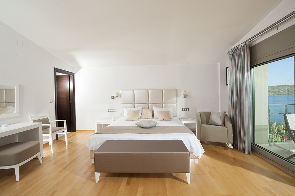 All the bedrooms have been placed on the top floor of 94.50 m² The two smaller rooms are perfect for a friendly couple or kids, since one of them has a double bed and the other two single beds. These two bedrooms share one beautiful bathroom decorated in blue fashion. But the main attraction of the top floor is the master bedroom. Rest on your king size bed, while enjoying the soothing sound of the waves right outside your balcony door, or simply enjoy a jacuzzi in you en suite bathroom, decorated exclusively with top quality marble. All bedrooms have access to separate verandas, and amazing view of the beach and sea.
