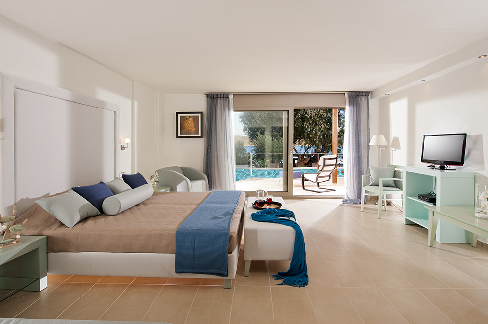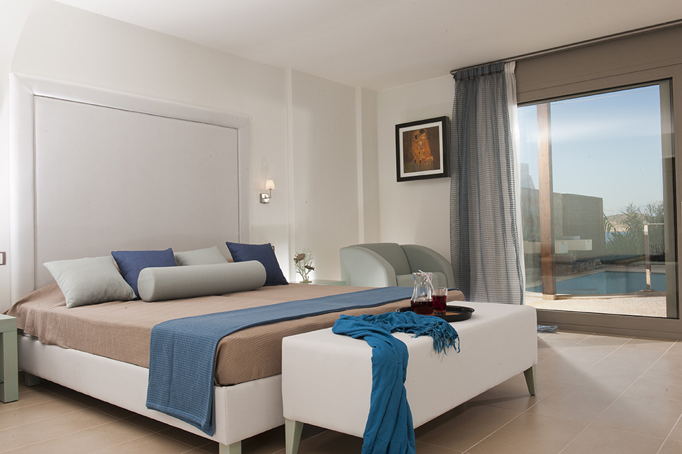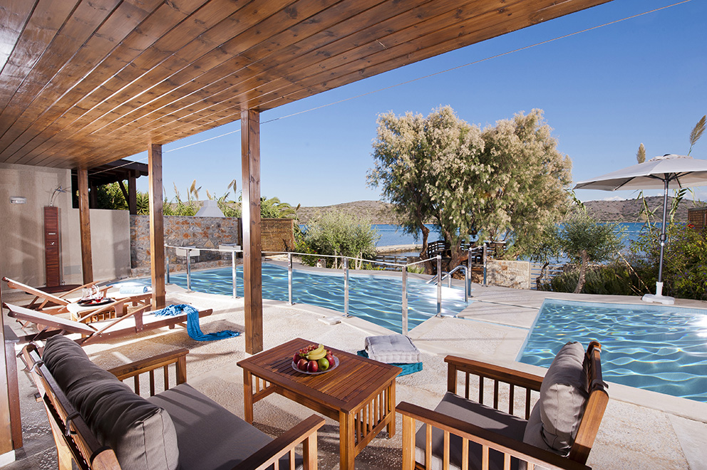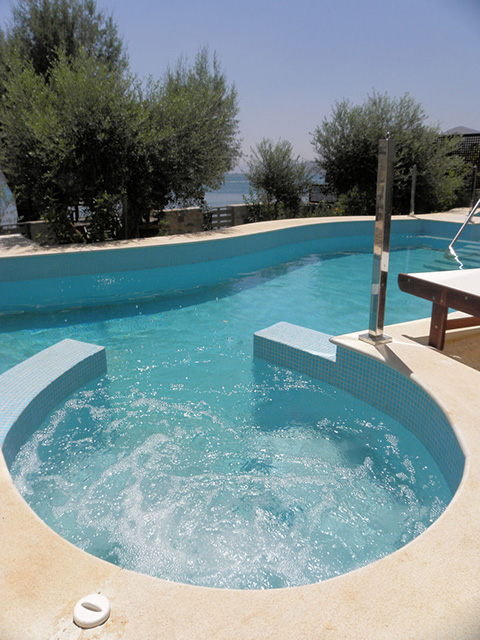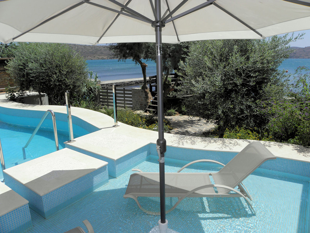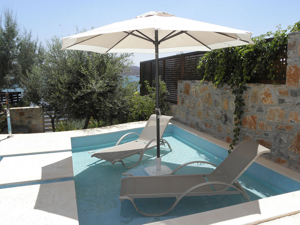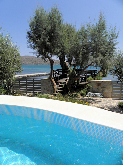 Once you step outside, you will be sure you made the right decision choosing the Villa Aqua. The patio has everything you need for relaxing right next to your pool, or maybe have some friends over and have a barbeque. The garden is full of flowers and olive trees, right before the biggest suprise you’d ever expected: your very own treehouse. Ideal for your morning coffee, simply relaxing, or even having dinner, you will love sitting there enjoying the beuatiful Greek summer. Once you open your garden door, you will realise you have a benefit that very few can claim: your own private sandy beach! Enjoy!