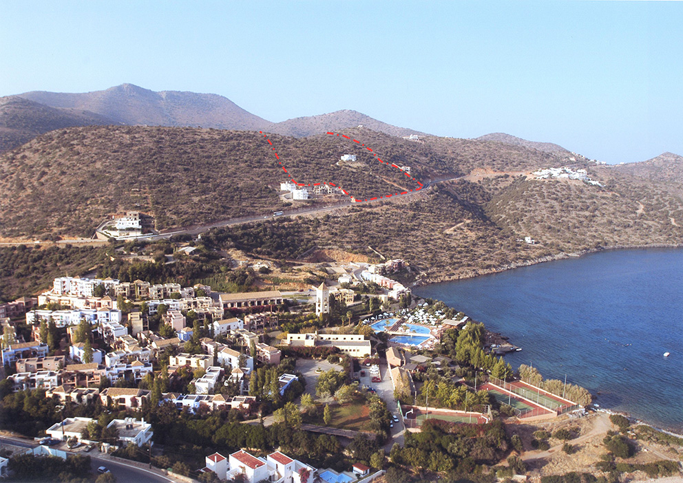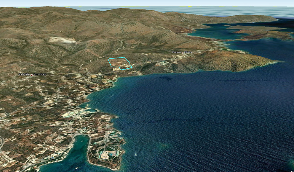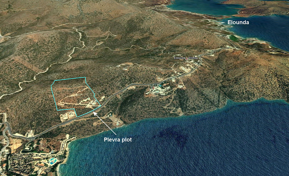 The plot is situated right outside of the town of Agios Nikolaos, in eastern Crete. It is a five minute drive from the center of Agios Nikolaos and the center of Elounda. The location of the plot is amphitheatricall on a hill side, with magnificent birds-eye views of the town of Agios Nikolaos and the whole bay of Mirabello.